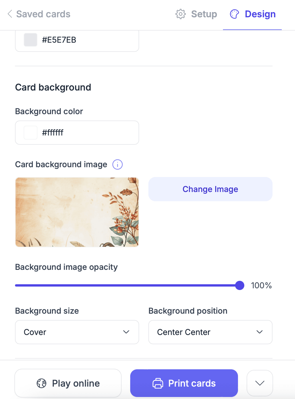 - Print at home: Need your bingo cards on the spot? Easily download and print your custom cards at home for a quick and convenient option.